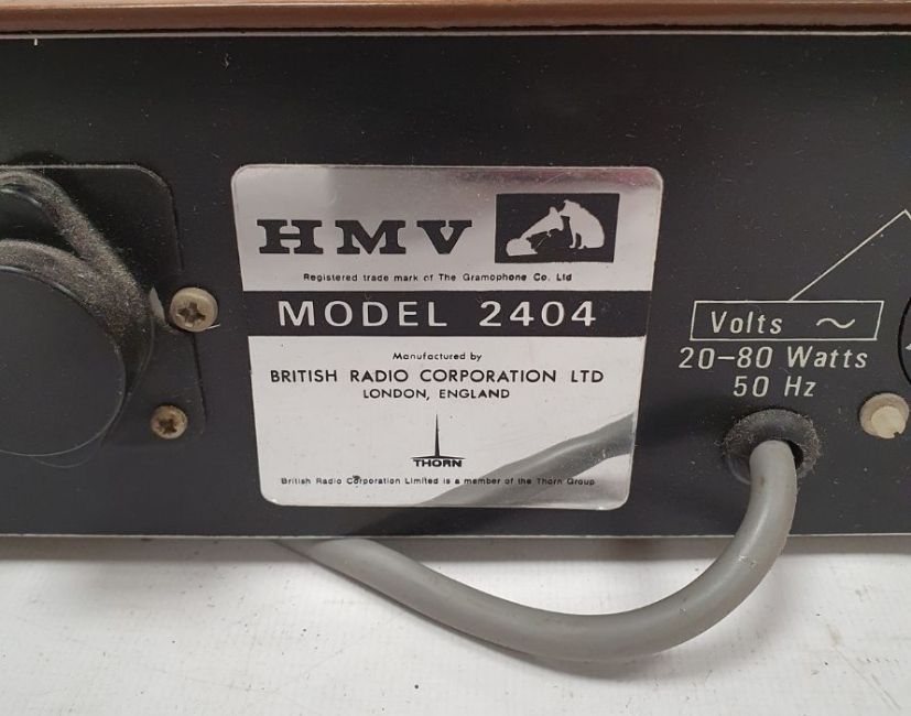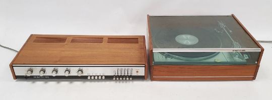 Vintage HMV turntable, manufactured by Lenco, housed in a teak case, model no.2405 and a HMV vintage amplifier receiver housed in teak case, model no.2404 (2)