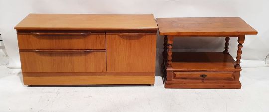Mid-century modern teak low lounge unit, height 59cm, length 119cm, depth 43cm together with a modern two-tier coffee table with drawer, height 55cm, length 80.5cm, width 45cm (2)