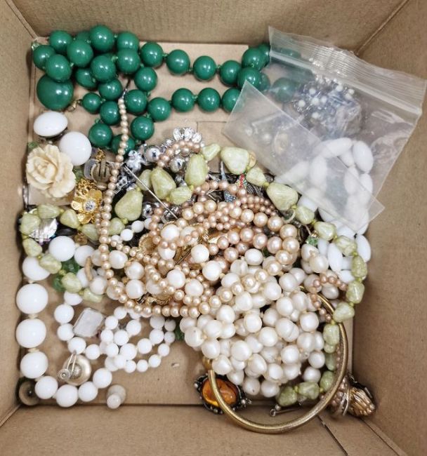 A quantity of costume jewellery, beaded necklaces, faux pearl necklaces etc (1 box)