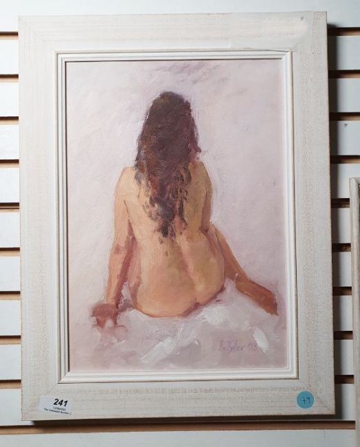 E Tyler Oil on board Nude study of female form, signed and dated 03 lower right, 34cm x 22.5cm
