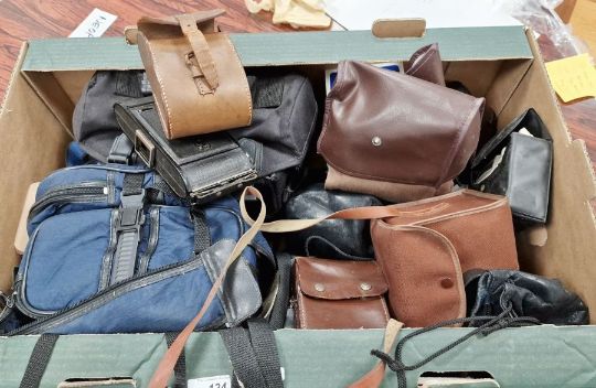 Quantity of cameras, binoculars and lenses to include a Kodak super 620 model brownie junior, a vintage Voigtlander camera, an Olympus OM-2 35mm SLR camera, a Sony Handycam vision high 8 camcorder, an Olympus 28-48 mm lens, an Olympus 200 mm lens, a pair of Bosch Opticon binoculars, a tripod, together with further cameras, binoculars and accessories