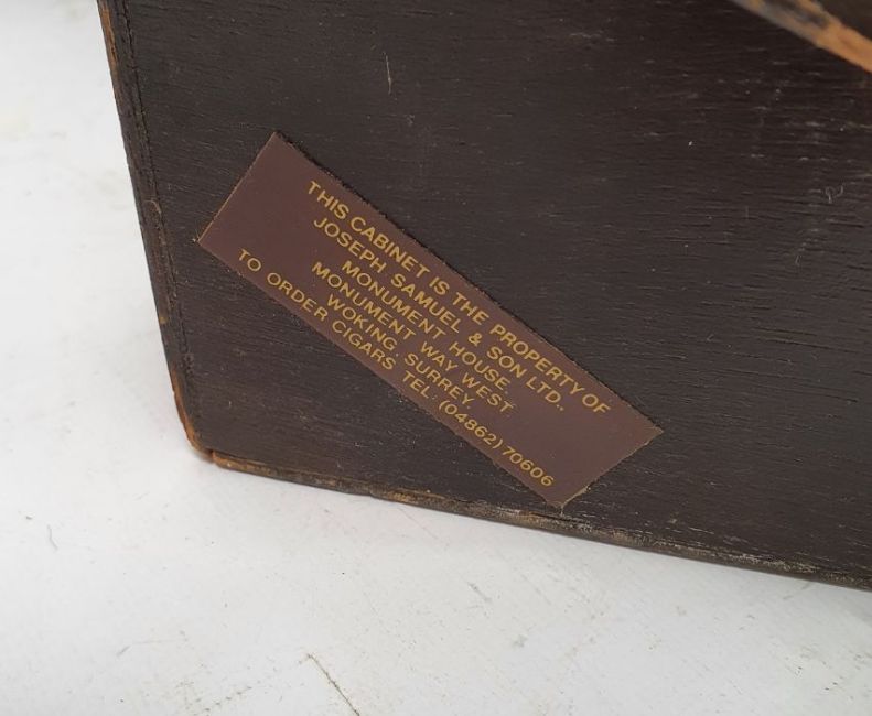 20th century cigar cabinet on tilted stand, 27cm wide approx.
