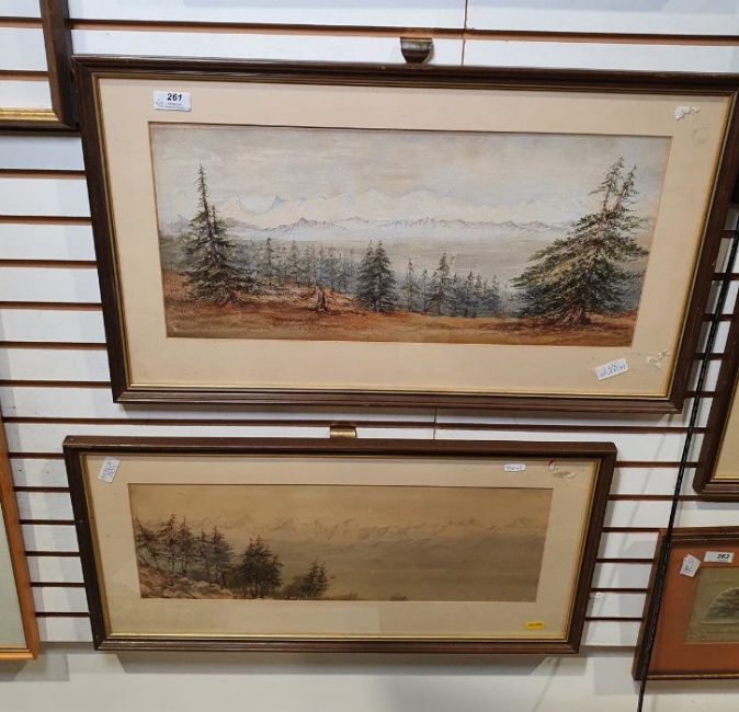 E. BruceWatercolourHighland scene with spruce trees to the foreground, mountain range in the backgroundand two further by the same hand, signed lower left (3)