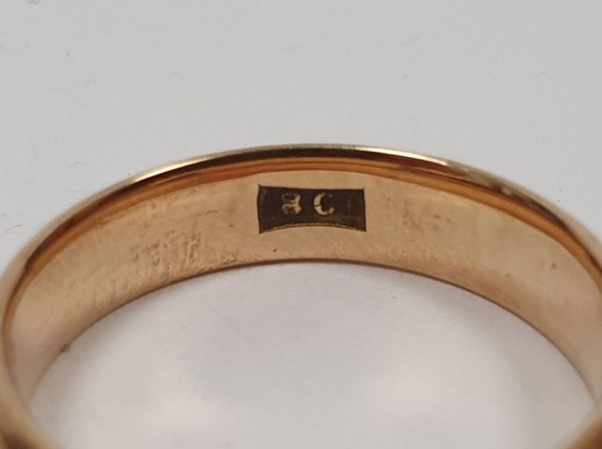 18ct gold wedding band, 4g approx.