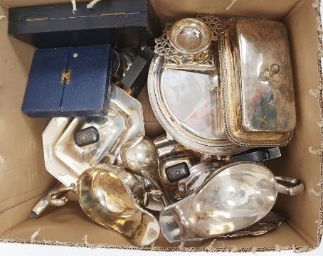 Various silver-plate to include a two-handled urn, teaset, candlesticks, trays, butter dishes, etc (2 boxes)