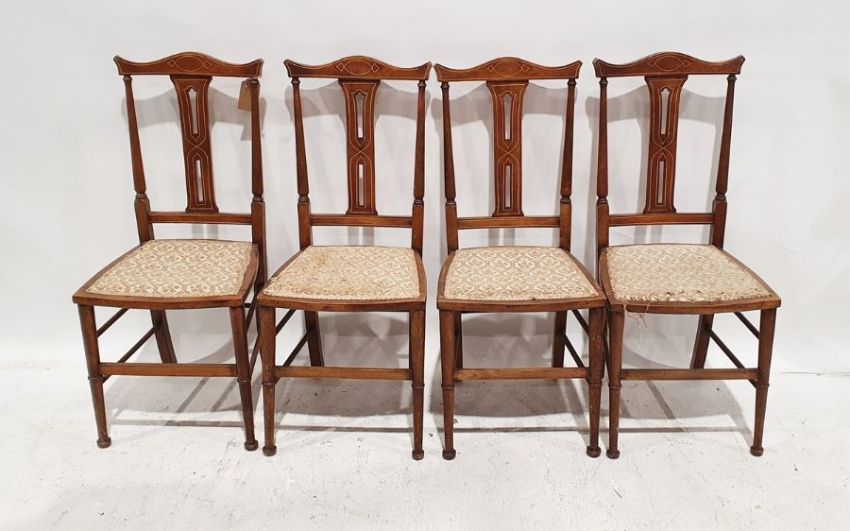 Four Edwardian inlaid chairs with upholstered seats (4)