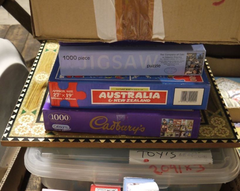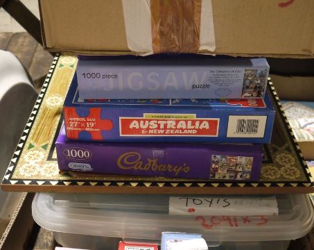 Quantity of board games and jigsaws to include Ludo, Scrabble, Monopoly, etc (3 boxes)