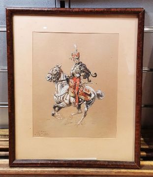 "Chevau-leger Louis XY", signed and titled within print and signed in pencil lower right together with another by the same hand "L'Empire aide de camp de Major General", titled within print, signed in pencil lower right together with further assorted prints (12)