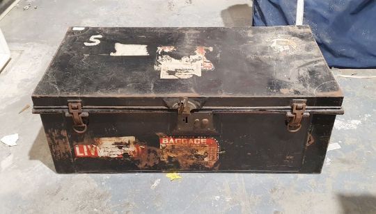Black painted metal trunk