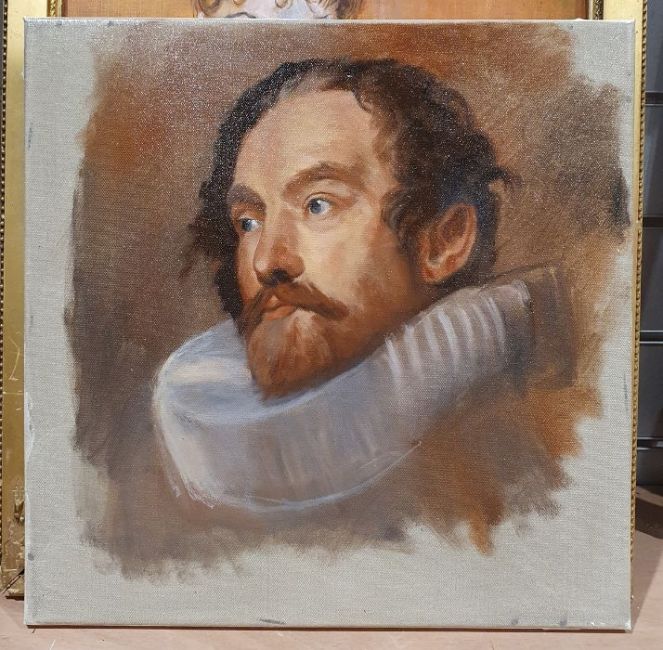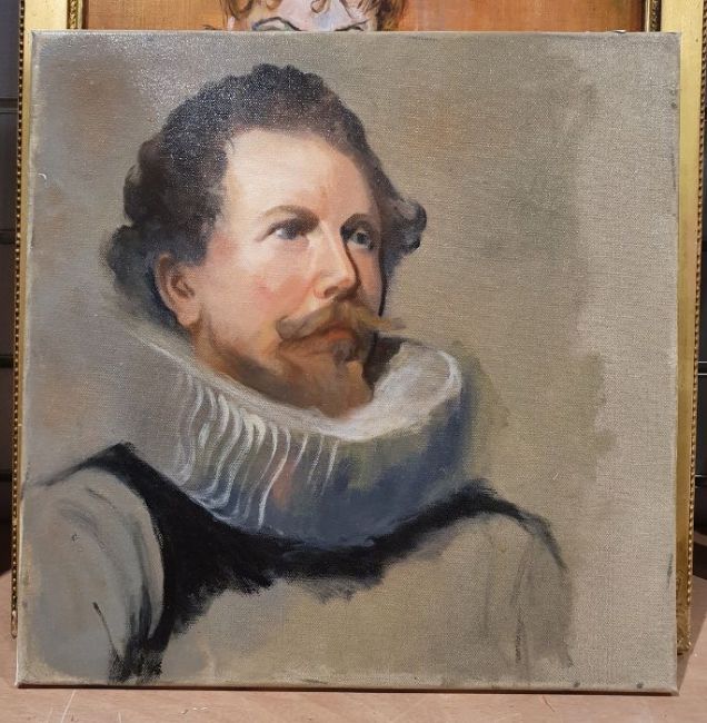 Portrait of a male with long hair, unsigned together with further assorted paintings (9)