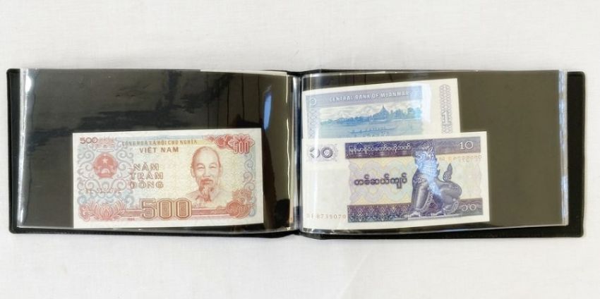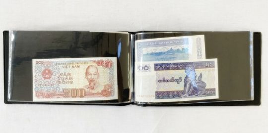 3 x bank collection books of mainly foreign notes and 6 British £1 notes of J. S. Forde