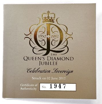 Limited edition 2012 brilliant uncirculated sovereign for the Queen's Diamond Jubilee with St George and the Dragon by Paul Day to reverse in wood effect presentation case. Certificate No. 1947 or 2012 minted for presentation