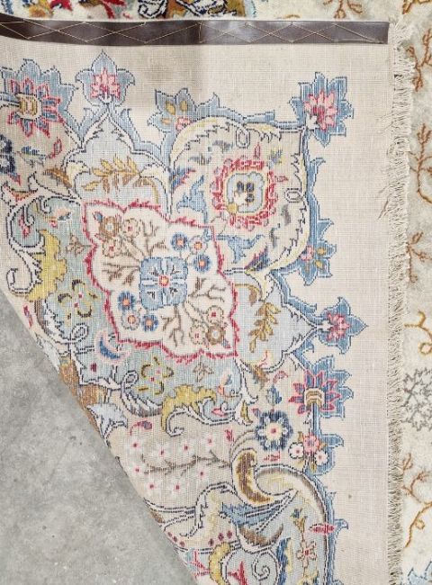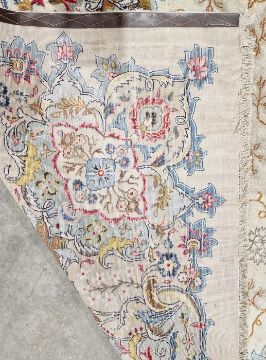 Central Persian Kashan cream ground carpet with large central floral medallion enclosed by hanging baskets and floral pattern to a floral border, 480cm x 300cm