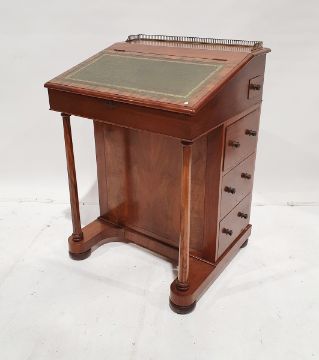 Late 19th/early 20th century rosewood and mahogany davenport with three side drawers, panelled columns
