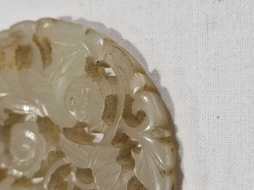 Light surface scratches, accretions, staining. Small chip to the edge, general wear and tear. The stand has a repair.