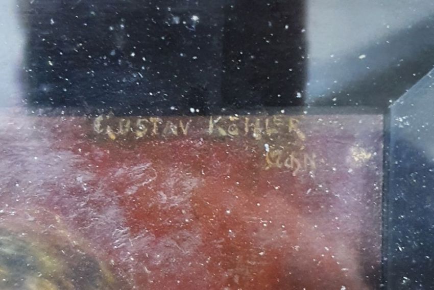 Gustav Kohler (1803-1881) Portrait of an elderly woman with green floral shawl holding a book, signed top right, framed and glazed, 17cm x 13.5cm