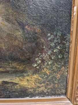 Manner of Narcisse Virgile Diaz de la Pena (1808-1876)Oil on canvasWoodland scene with nude female bather overlooked by male voyeur, unsigned, 41cm x 37cmCondition ReportAreas of crazing, accretions. Areas of overpainting visible under UV. Needs a clean.  General wear and tear.