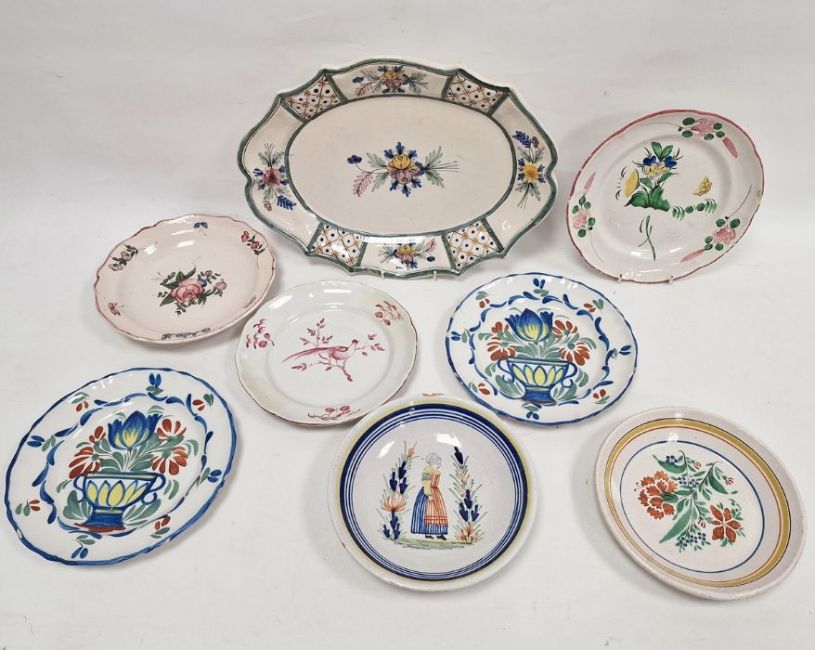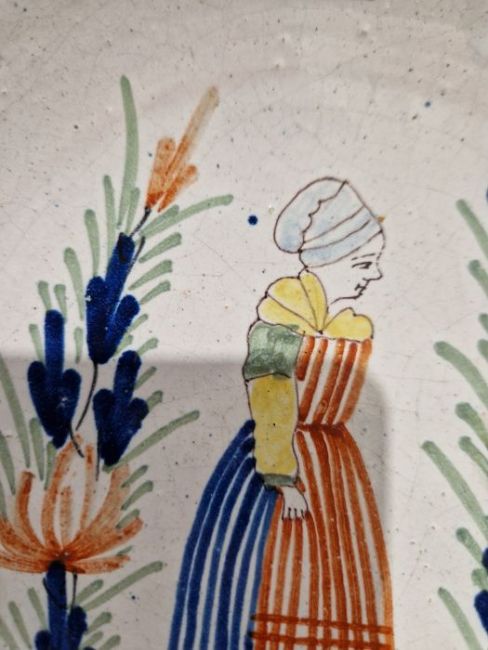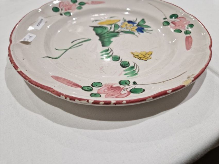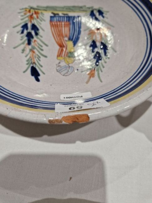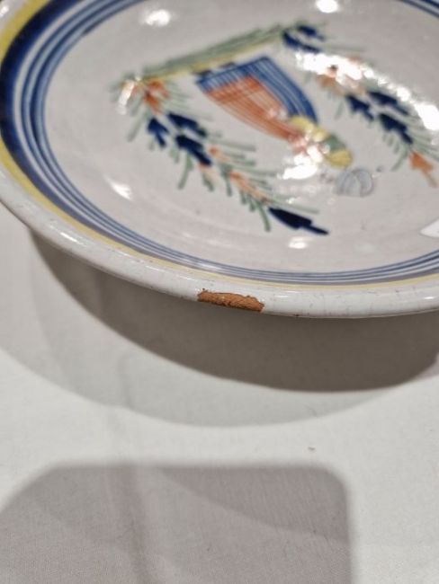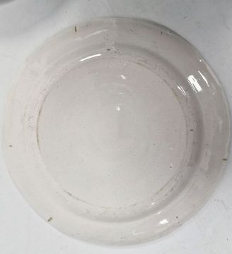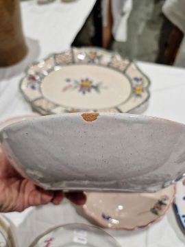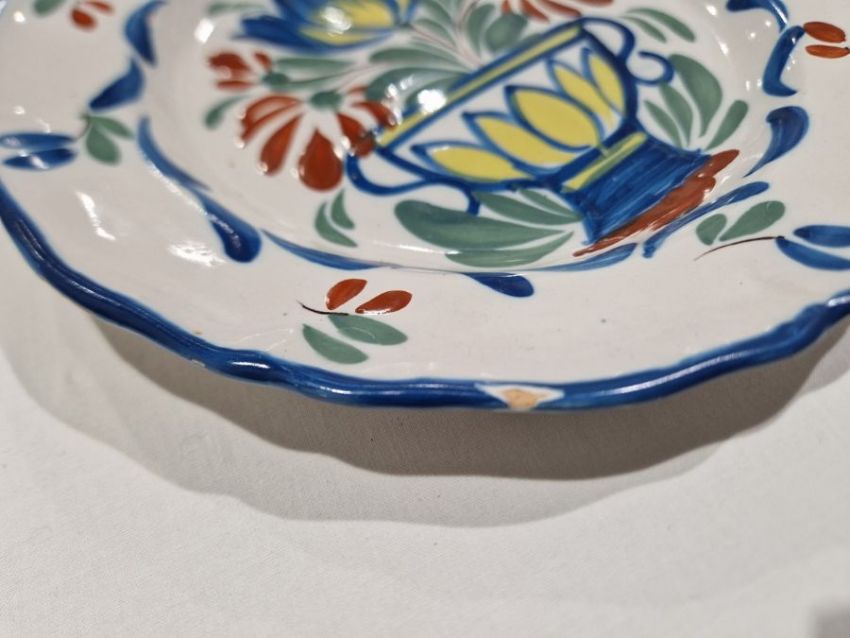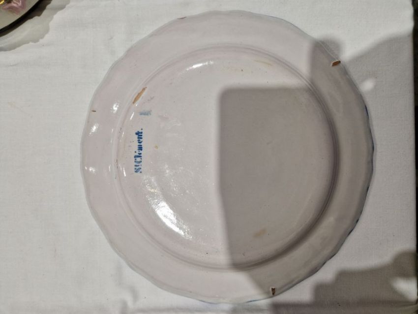 Surface scratches and accretions. Some plates and bowls with chips. Bird plate with crack and old repairs. General wear and tear