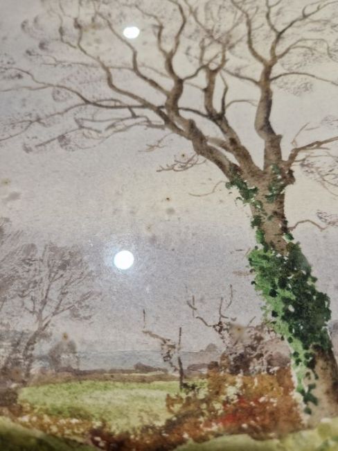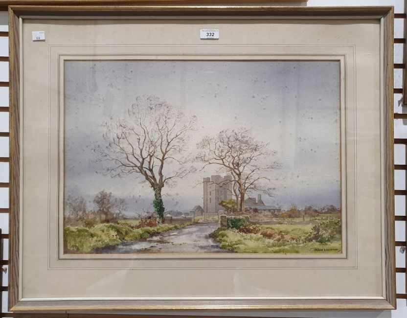Frank Egginton (Irish, 1908-1990) Watercolour"Dunsoghly Castle, County Dublin", signed lower right, 37cm x 53cm Condition ReportNo obvious signs of foxing on painting, there are numerous brown spots to the inside of the glass. Possibly some minor fading or discolouration. General Wear and tear.