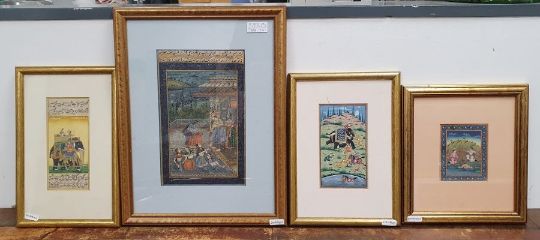 Indian School (19th/20th century)Watercolour and gouacheFour Indian paintings, unsigned, framed and glazed, largest 23.5cm x 14.5cm, smallest 10cm x 8cm (4)
