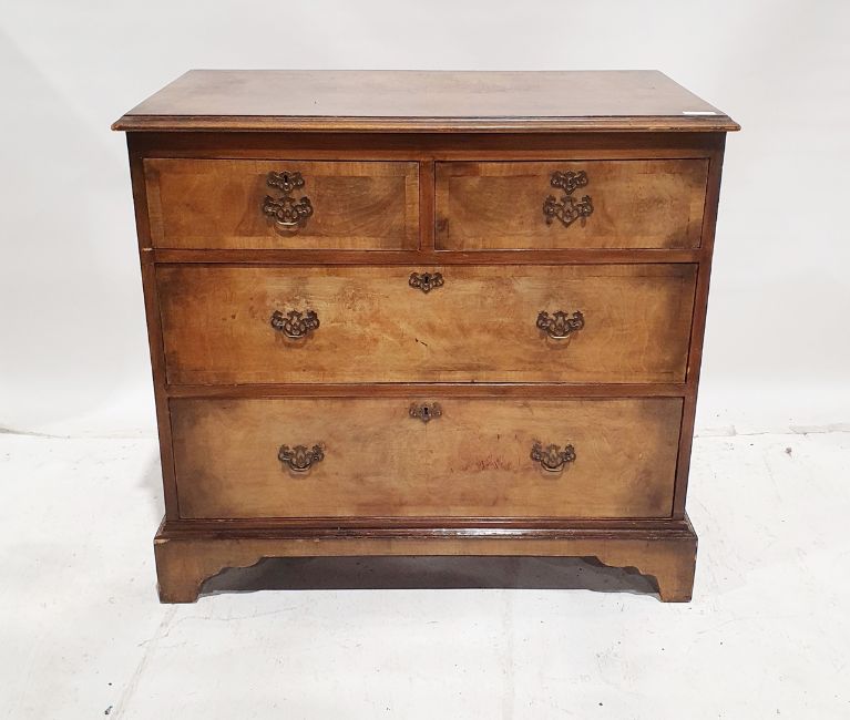 Walnut chest of drawers, two short drawers above two long drawers, on bracket feet Condition ReportApprox. Dimensions = H81cm x W89cm x D49cmLoss to left top handle, piece still present but snapped. Chips and wear to edges as well as surface marks and scratches throughout. Wear to back.