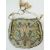 17th century embroidered silk purse / reticule, possibly Ecclesiastical, the pale blue ground embroidered with silver thread, couched and plaited braid stitched with relief heart and scrolls, pink, green, gold and turquoise embroidered stylised flowers with silver braid scalloped border, the initials 'I H S ' are embroidered in silver thread on one side, silk tassels to the draw thread top, body of purse 16cm x 14cm