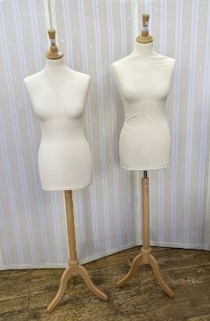 Two modern dress mannequins, adjustable height, size 8-10,on wooden support (2)