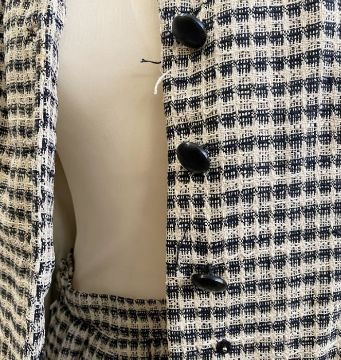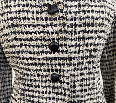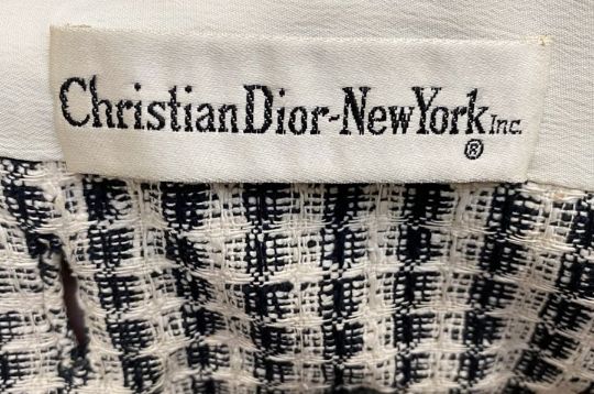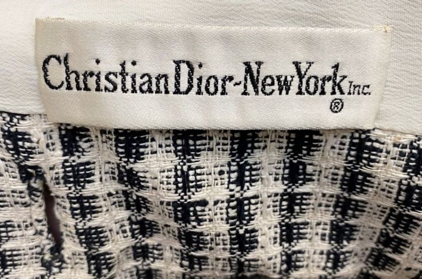Christian Dior 1950's houndstooth wool check suit, the jacket labelled 'Christian Dior - New York Inc', black three button fastening, the skirt has the labelled front and a two-zip fastening on the back at the hip