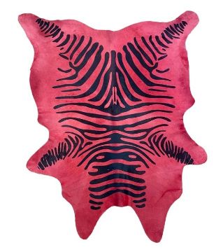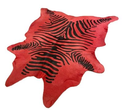 A large cow hide fur rug, dyed red with black stripes 'a la Zebra' Condition ReportApprox 205cm x 153cm