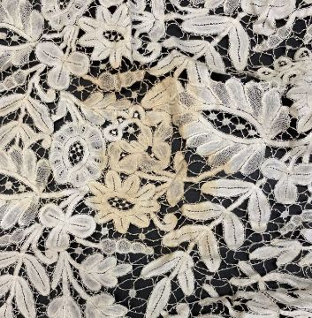 Bobbin lace collar/fichu, possibly Honiton, with foliate and floral sprays (possibly a dress panel)
