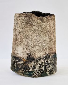 Peter Clough (b.1944) studio pottery landscape vase, marked to side, 24.5cm high approx.