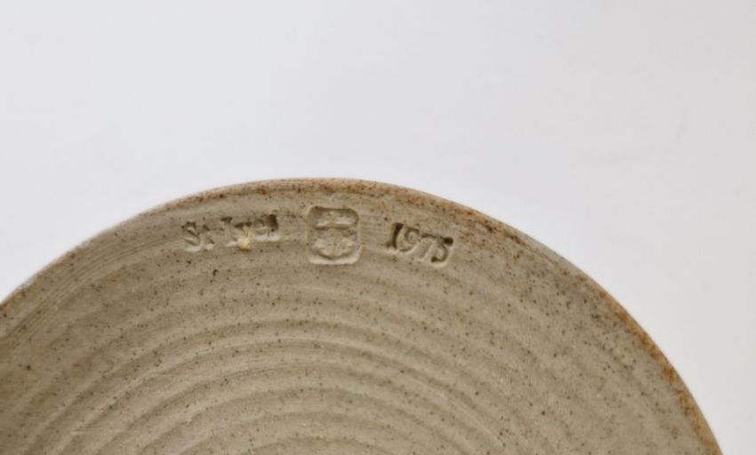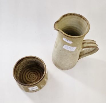 St Ives studio pottery jug and bowl, marked to base 'St Ives' with anchor mark 1975, 17.5cm high and 6.5cm high (2)