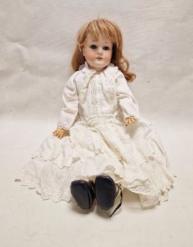 German C. M. Bergmann bisque head doll, 1916 7a, blue eyes, open mouth and teeth, composition body, 66cm