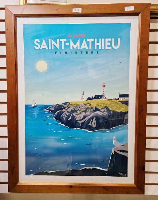 Travel / tourist poster'La Pointe Saint Mathieu, Finisterre' 68 x 49cm. framed and glazed
