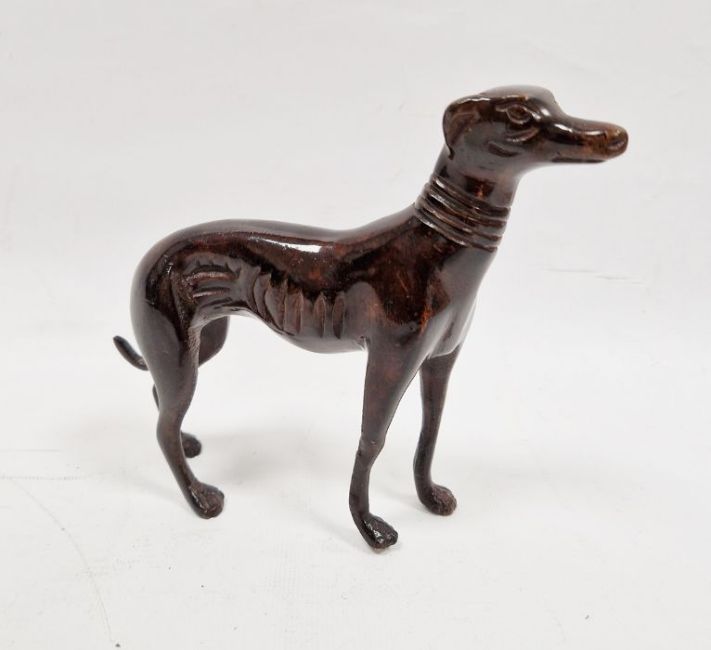 Bronze model greyhound with mottled effect finish, 14cm high x 17cm wide overall approx.