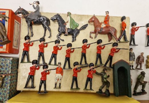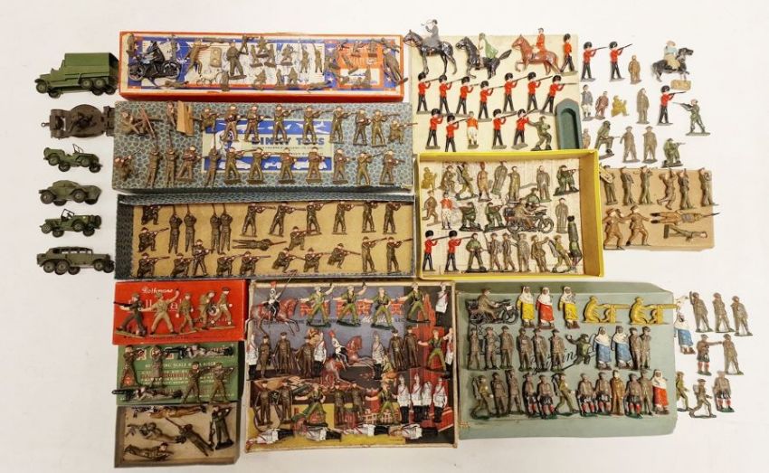Quantity of loose Britains soldiers and a small quantity of Dinky military vehicles (9 boxes)