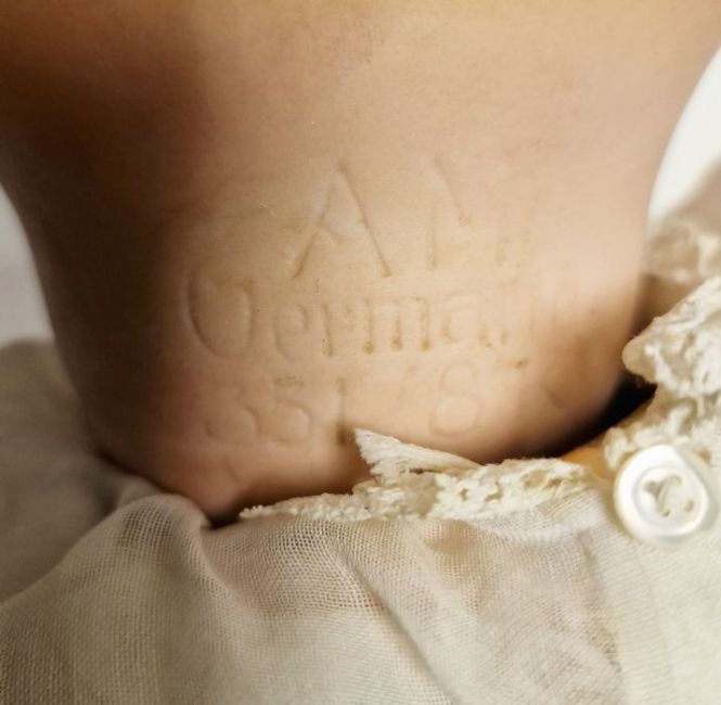 Armand Marseille 390A 6.5M child doll, another and a doll's white painted high chair (3)