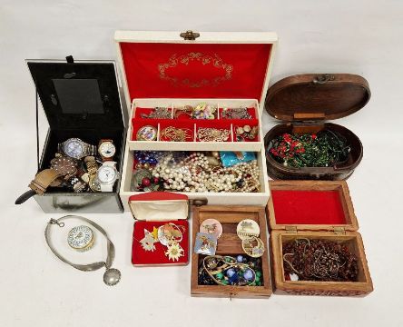 Quantity of costume jewellery to include gent's watches, bead necklaces, etc (1 box)