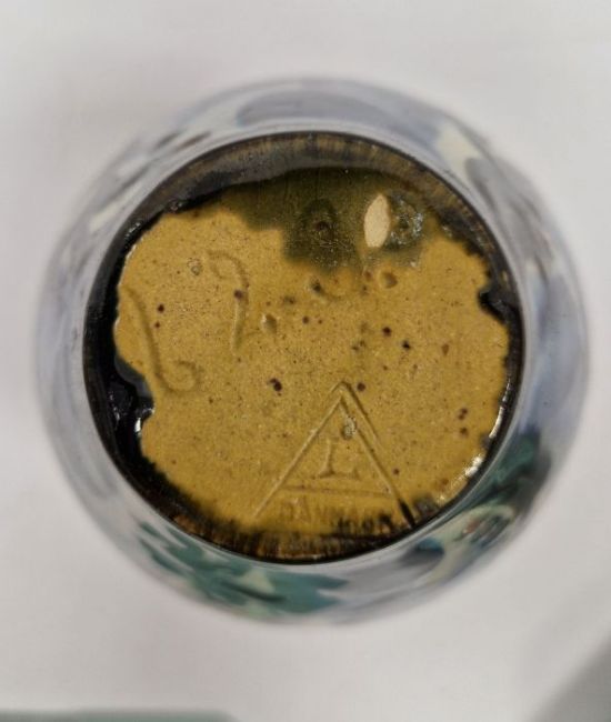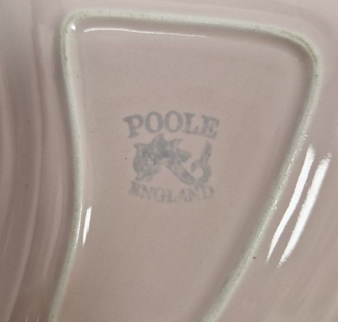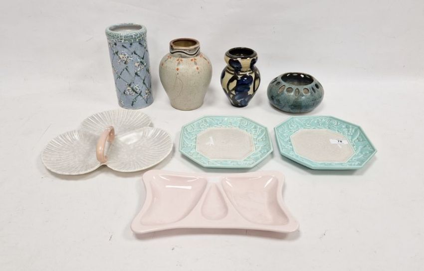 Royal Doulton stoneware vase, a Danish studio pottery vase, ovoid with blue and black decoration, 15cm high, a Poole trefoil hors d'oeuvres dish, a pair of Poole octagonal dishes with blue floral borders, a Poole hors d'oeuvres dish and three other items (7)