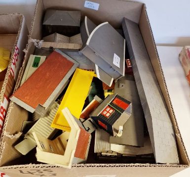 Hornby '00' gauge model set, various boxed cars, track, liveries, buildings, Airfix trackside presentation set, Tri-ang power controller, etc (3 boxes)