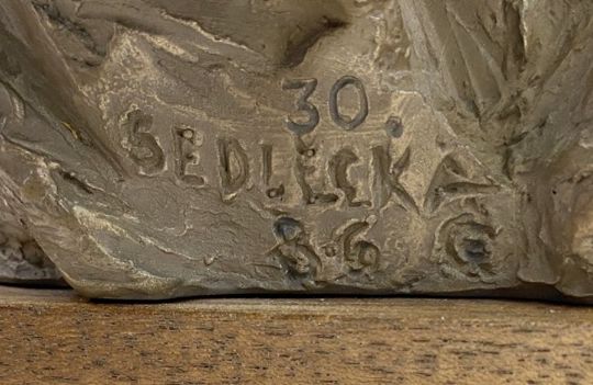 After Irena Sedlecka, resinous bust of Maria Callas, on hardwood base, 28cm high