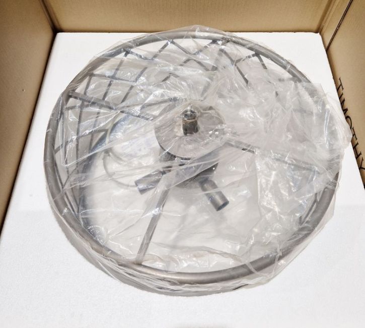 Timothy Oulton Zig Zag Hoop Pendant light, small,  50cm, packed in original boxes (2) with assembly instructions 'The Zig Zag pendant features delicate spheres of handpolished glass suspended from an intricate iron skeleton...'  From Timothy Oulton's websitePlease note the first photo is a product image, we have not removed the light from its packaging.