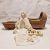 Bisque headed doll with fixed blue glass eyes, in christening robe and cream wool cape, three composition doll shoulderheads with painted faces, sundry bisque arms and two wicker doll's cradles