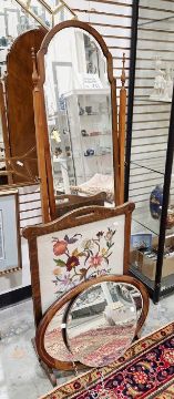 Mahogany cheval mirror, a firescreen and two wall mirrors (4)