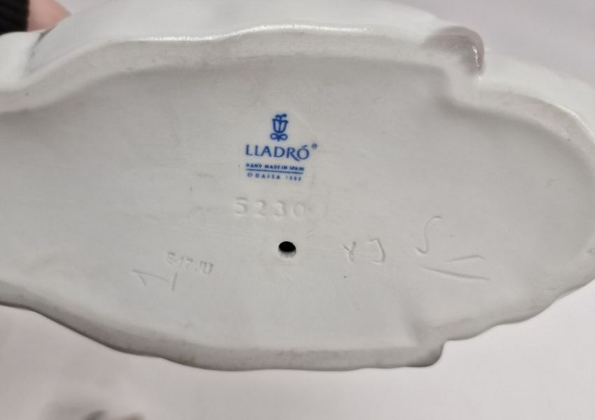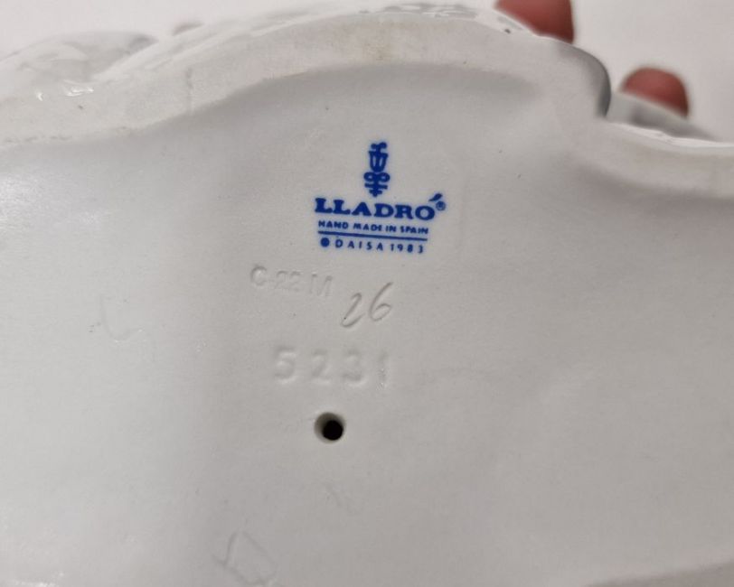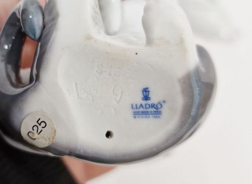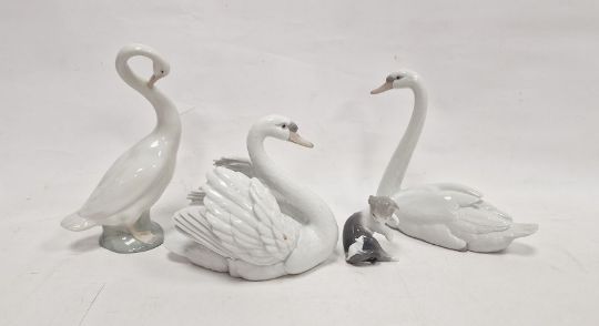Two Lladro models of swans, naturalistically modelled, one swan with wings outstretched, 21cm high, a model of a kitten and a mouse, a Nao model of a goose, printed and impressed marks,Condition ReportCat - residue on the base       - spot on reverse of the tailSwans - 2 have no obvious damage            - the swan with wings extended has some residue on both wings, possibly glueSee attached images