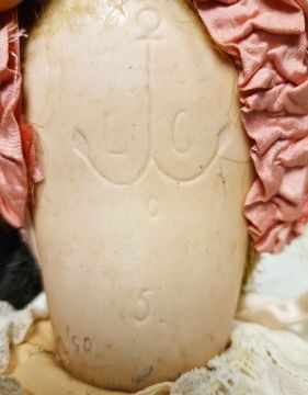 Jutta bisque headed baby doll with sleeping blue eyes, open mouth, moulded composition body, 53cm and a French bisque headed doll with sleeping blue eyes, open mouth, marked 'LG' with anchor, 58.5cm (2)