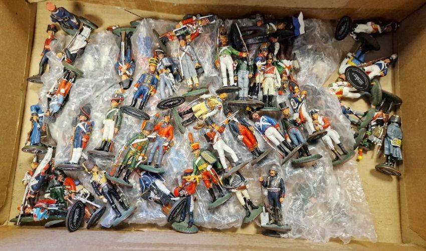 Collection of Del Prado cast figures, French Artillery Train, Highlanders, French Old Guard and other various foot soldiers with relating magazines (3 boxes)
