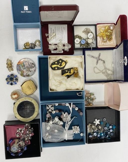 Quantity of costume jewellery to include clip-on earrings, necklaces, etc (1 box)