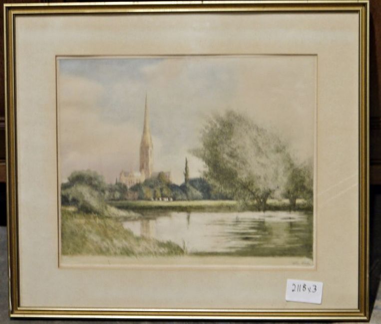 Salisbury Cathedral?, signed in pencil in the margin (3)