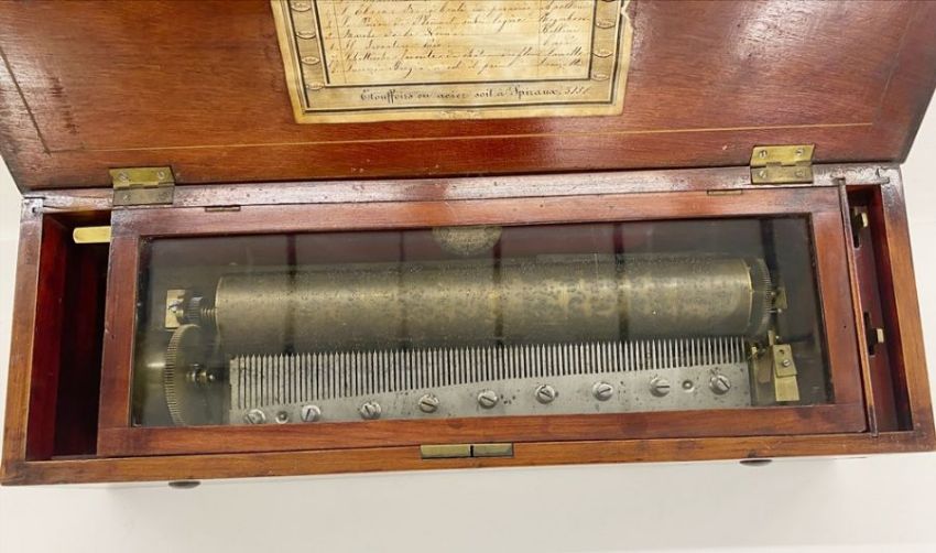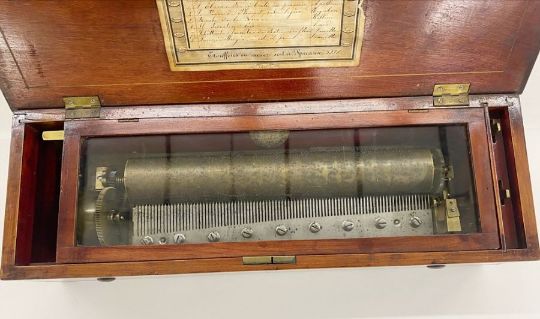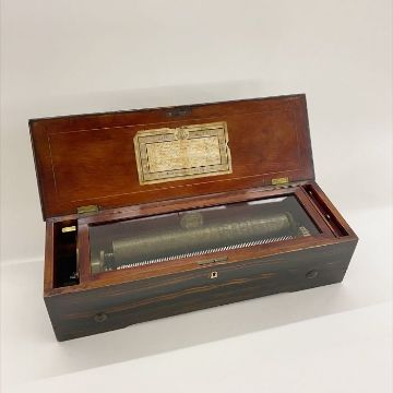 Inscriptions to the base of the music box read: 'Benja(min) Williams, August 15th 1861, No. 3158, B. Williams. Maker's label can also be found to the base: maker's label 'Botterell Watch & Clockmaker, Jeweller & Co., Fore Street, Liskeard'. In working order at the vendors house we have not had it working since arriving in the saleroom so cannot guarantee in working order
